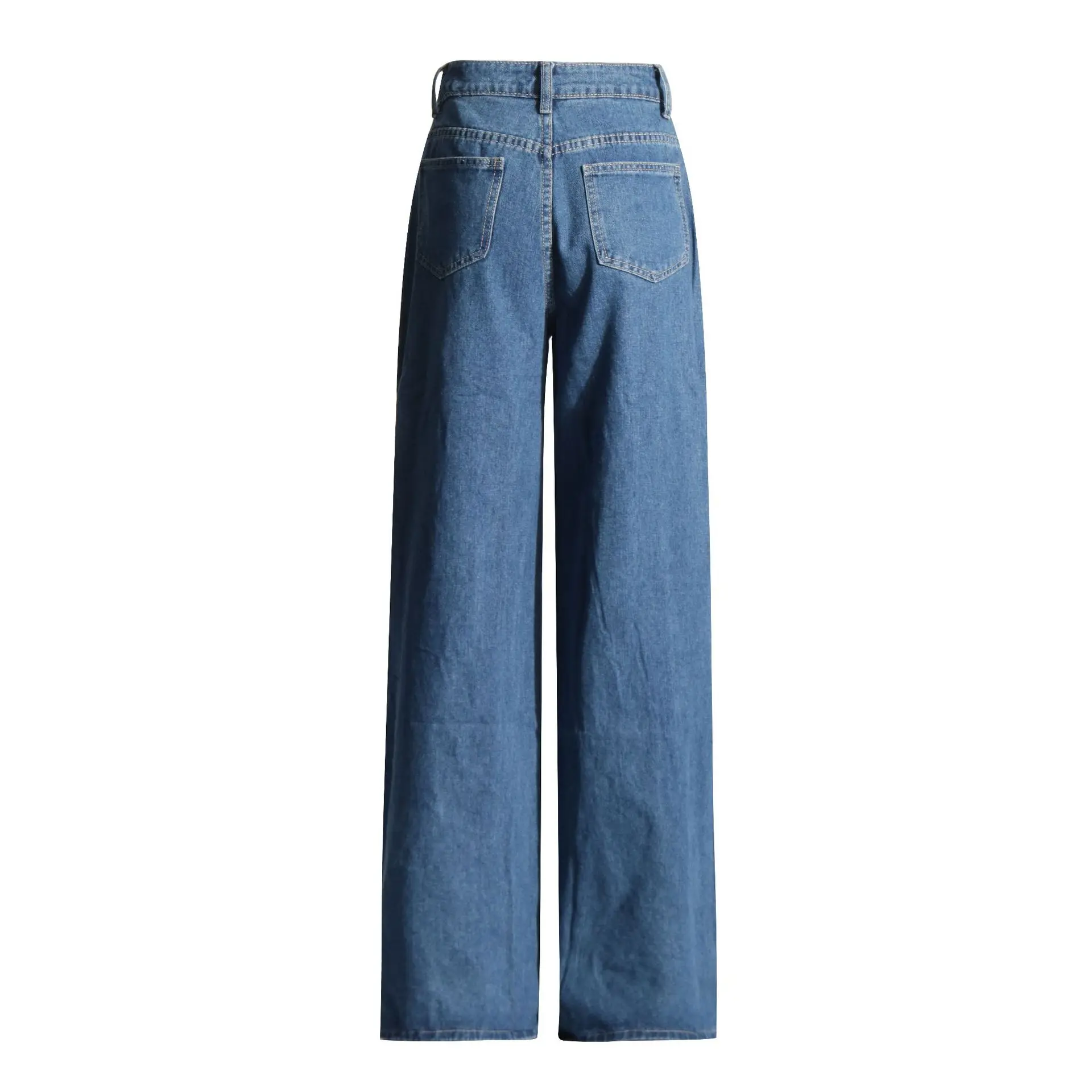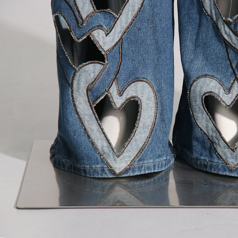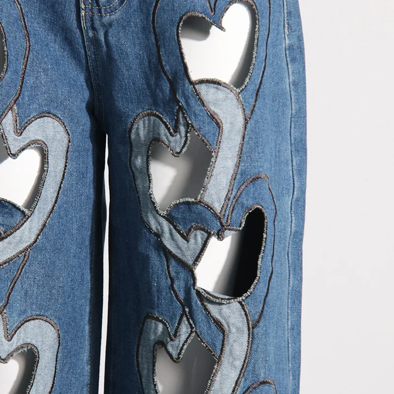 OUDINA Trendy High Waist Hollow Wide Leg Women Jeans Pants Straight Jeans For Women Casual Women's Jeans